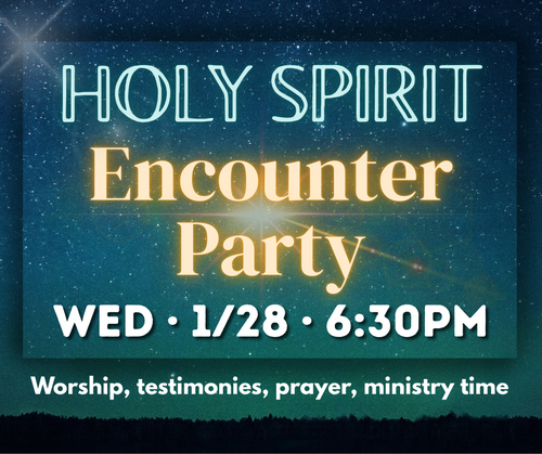 We’re excited to welcome Eli and Sarah Zuck back for a special Holy Spirit Encounter Party on Wednesday, January 28th! This will be a powerful evening set aside to experience the Holy Spirit through heartfelt worship, shared testimonies, and dedicated ministry time. Come expectant as we gather to worship, listen, and allow God to move freely among us. All are welcome—we would love for you to join us! Party starts at 6:30pm in the Youth Building.
