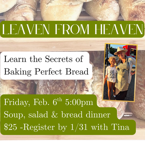 Come learn, bake, and leave inspired—with fresh bread and the confidence to keep going! Every loaf is prayed over and you can taste the blessings pouring over you in every bite!